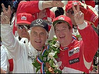 Al Unser Jr. and Roger Penske celebrate their 1994 Indianapolis 500 win. |