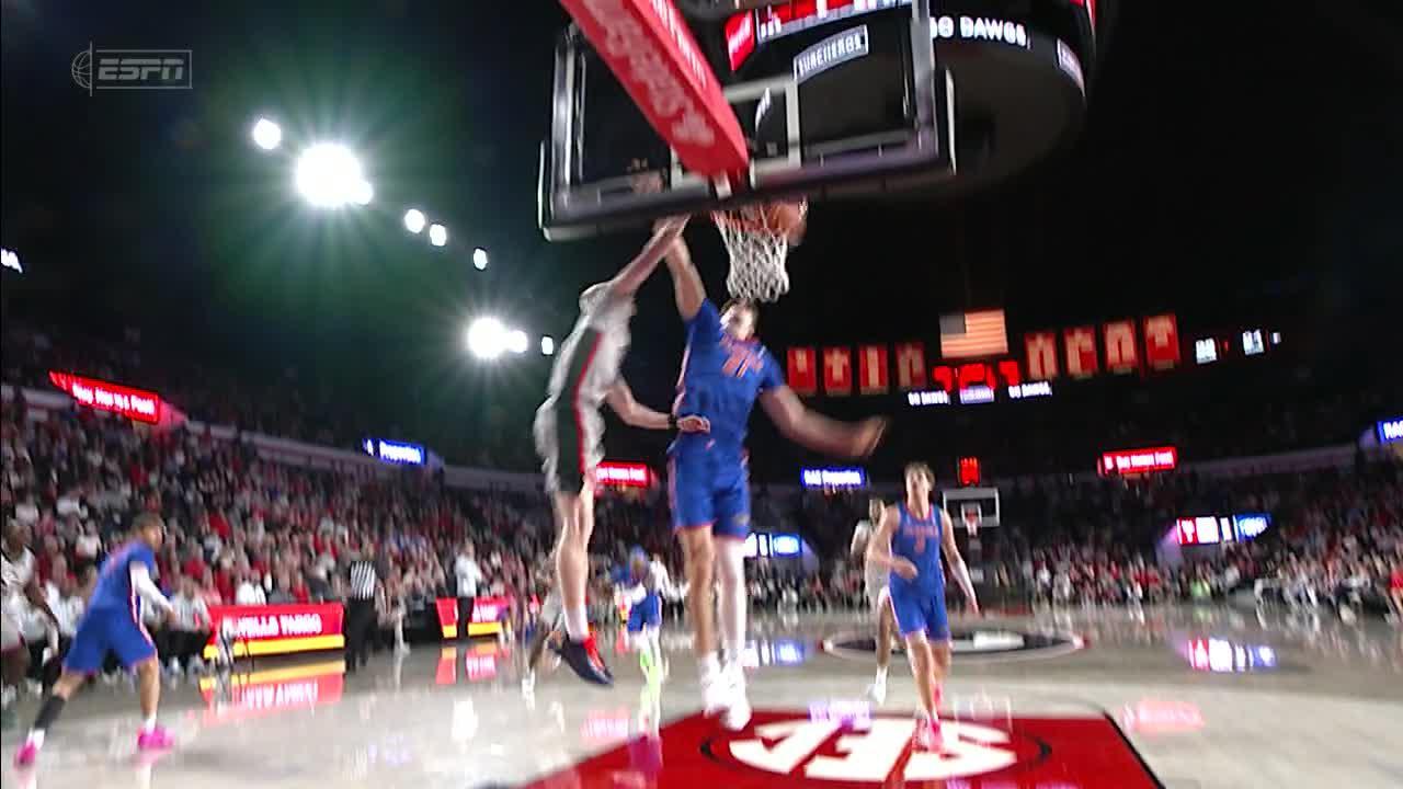 Blue Cain goes up and over the Florida defender for a poster dunk.