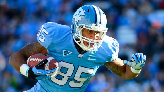 Tight End | North CarolinaCoach Larry Fedora expected Ebron to have an All-American year, and he lived up to that billing, setting an ACC single-season record for receiving yards by a tight end with 895, breaking the mark Vernon Davis set at Maryland in 2005. Ebron has 55 receptions, the second-best single-season total in ACC history, and recorded the second-highest single-game receiving total by a tight end in league history with 199 yards on eight catches against Miami in October. Ebron proved unguardable in just about every game with his combination of size, speed and ability to make the tough catches look easy. -- Andrea Adelson