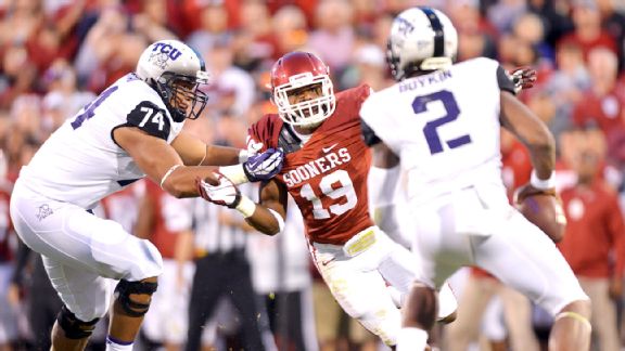 Linebacker | OklahomaStriker's three-sack performance in the Allstate Sugar Bowl put him on the map heading into 2014 as he created havoc in Alabama's backfield throughout the Sooners' upset win. Striker had a knack of getting to the quarterback as a sophomore. He is a nightmare matchup for opponents, so the Sooners spent a portion of the offseason devising ways to put him in positions to do what he does best, which is causing chaos for quarterbacks. As good as Striker was at the end of last season, the junior could be even better in 2014. -- Brandon Chatmon