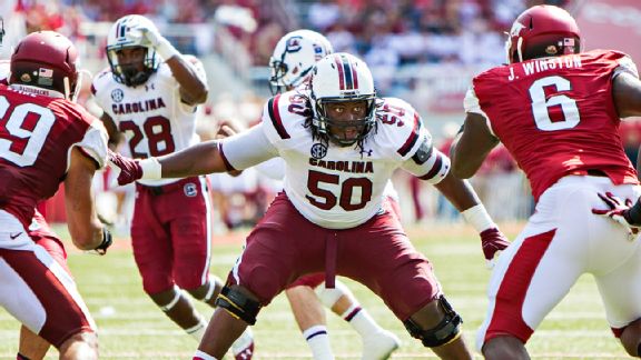 Offensive guard | South CarolinaHe's already being viewed as one of the top guard prospects in next year's NFL draft. Cann enters the 2014 season with 38 straight starts at left guard for the Gamecocks since taking over at the position as a redshirt freshman. Cann's imposing 6-foot-4, 311-pound frame helps him eat up space in the running game, but his athleticism makes him a beast to mess with in pass protection. Cann is one of the league's best leaders and was named a permanent starter as a junior last season. He is the heart of one of the nation's best offensive lines this fall. -- Edward Aschoff