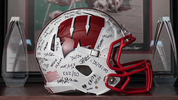Andersen keeps at home a similar helmet from his early days as Utah State's coach, but the Wisconsin helmet will never leave his office at Camp Randall Stadium.