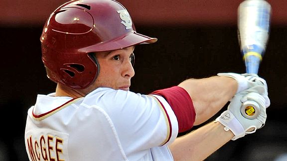 Right-handed pitcher/Outfield | Florida StateFormer teammate Buster Posey played all nine positions in a game, but that was for only one game. McGee routinely dominates two positions. The right-hander/left fielder has already strung together three double-duty seasons, earning freshman All-America honors, then ranking in the top 10 in the ACC in seven offensive categories as a sophomore before again leading Florida State in home runs and RBIs as a junior while transitioning to the bullpen to rack up 13 saves. McGee displayed his immense value in the 2010 super regionals against Vanderbilt by hitting a game-ending home run before recording a save two days later. All that success resulted only in McGee becoming a 41st-round flier by the Diamondbacks last June, so he's back as a senior.