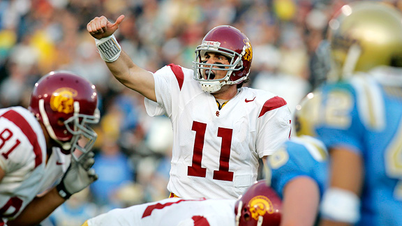 Quarterback | USCOver three seasons, quarterback Matt Leinart led USC to a 37-2 record and two AP national championships. He won the 2004 Heisman Trophy, and set aside speculation that he would be the first choice in the 2005 NFL Draft by staying for his senior season.