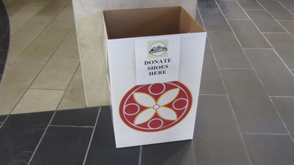 As part of their commitment to recycling and reuse, USC has shoe collection bins around campus. These shoes can be donated, or broken down at a special recycling facility and turned into flooring for tennis courts, or playgrounds. Our ESPN campus in Bristol has the same program and we collect over 1000 lbs of shoes every year from employees!