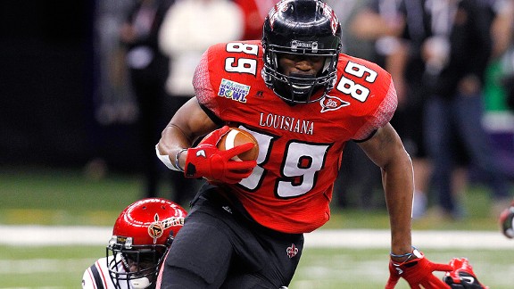 The 6-foot-6, 230-pound tight end was a mismatch for the Aztecs' smaller defenders, and ULL quarterback Blaine Gautier exploited that mismatch, connecting with Green five times for 121 receiving yards that included a 20-yard touchdown pass just 59 seconds into the second half. Green finished with a whopping 24.2 yards per catch average that also included a 44-yard reception.