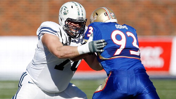 Offensive Tackle | BYUReynolds had one of the best plays during bowl season in the Bell Helicopter Armed Forces Bowl against Tulsa. Reynolds delivered a hit with his helmet off as quarterback Riley Nelson scrambled away from pressure. That hit allowed Nelson to find Cody Hoffman in the end zone with 12 seconds to go before halftime to close the Cougars' deficit to 14-10. BYU ended up winning, 24-21.