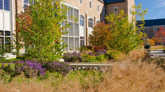 Rain Garden:The rain garden outside Stinson-Remick Hall utilizes hardy, native plantings to trap storm water in a low-impact yet aesthetic manner. Throughout the campus, a comprehensive approach to storm water management protects local lakes and wetlands from sedimentation and others forms of runoff pollution. University policies include protection and expansion of the campus tree cover, strict construction site management, road and storm drain cleaning, and community education.