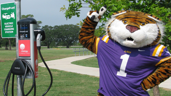 Electric Vehicle Charging Stations: In 2011, LSU partnered with Entergy Louisiana LLC to install two new electric vehicle charging stations on campus. These EV chargers provide free power to students, faculty and staff who own electric vehicles, and they also enable university departments, such as the Center for Energy Studies, to collect usage data and conduct critical research about the chargers' impact on consumers and the electric grid.