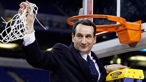 In 2010, Duke and Butler provided us one of the best national championship games in recent memory. And if a certain shot at the buzzer would have banked in, it would have immediately been in the discussion for Best Title Game of All Time. But the shot didn't, giving the Blue Devils their first national championship since 2001. For coach Mike Krzyzewski, the title was especially significant, as it was his fourth ring and tied him for second all-time with Kentucky' coach Adolph Rupp. Now there's only a small ocean between Coach K and UCLA coach John Wooden (10 titles) at No. 1. -- Teddy Mitrosilis