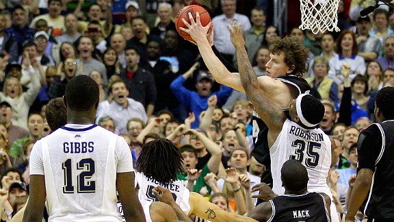 A year after Butler went to the Final Four in 2010, few expected a repeat appearance. But the magic resumed in the 2011 NCAA tournament. No. 8 Butler beat No. 1 Pitt in the Round of 32 with a brilliant little play call by Brad Stevens in the final seven seconds, or so it seemed: When Shelvin Mack committed one of the dumbest fouls of all time, Pitt had a chance to win at the free throw line. Gilbert Brown made the first and missed the second, and with 0.8 left on the clock, and the game tied at 70, Matt Howard grabbed the rebound and flung it to the other end … and was fouled by Pitt forward Nasir Robinson. Howard won the game, Robinson was devastated and the Bulldogs were well on their way to a second straight Final Four. -- Eamonn Brennan