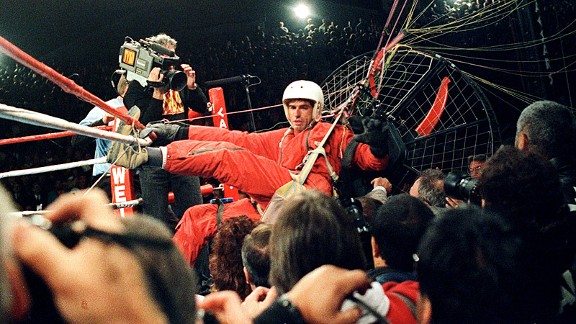 "Fan Man" glides into Evander Holyfield-Riddick Bowe fight.