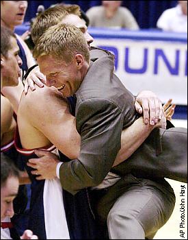 Gonzaga coach Mark Few, right, jumps into the arms of forward Mark Spink after Gonzaga beat St. John's 82-76 in an NCAA West second-round playoff game. ![]() ![]() ![]() |