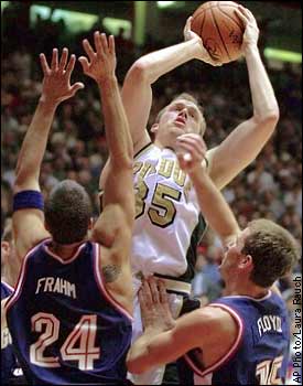 Purdue's Brian Cardinal shoots over Gonzaga's Richie Frahm and Ryan Floyd during the second half of their semifinal game of the NCAA West Regional Thursday. ![]() ![]() ![]() |
