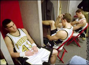 Purdue's Carson Cunningham, left, Chad Kerkhof, center, and John Allison, right, sit in the locker room after losing the NCAA West Regional final 64-60 to Wisconsin. ![]() ![]() ![]() |