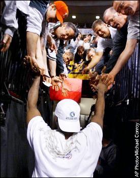 Michigan State's Mateen Cleaves is greeted by fans in the tunnel after the Spartans beat Iowa State 75-64 in the NCAA Midwest Regional championship game. ![]() ![]() ![]() |