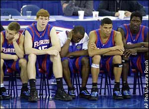 Florida players look on from the bench late in the second half of the NCAA Championship against Michigan State. Florida lost to Michigan State 89-76. ![]() ![]() ![]() |