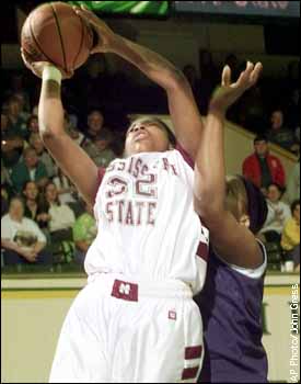 Mississippi State's LaToya Thomas shoots over St. Peter's Leah Cromer, during the NCAA Western regional first-round matchup. Mississippi won 94-60. ![]() ![]() ![]() |