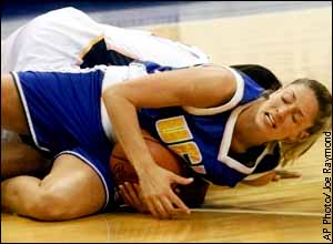 UCLA's Maylana Martin grabs a rebound from George Washington's Star Jefferson in their first-round game. George Washington defeated UCLA 79-72. ![]() ![]() ![]() |