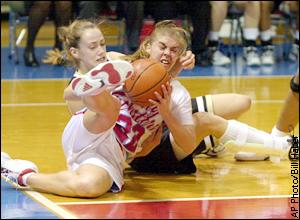 Christie Sides, of Louisiana Tech, gets position on Vanderbilt's Jillian Danker during a scramble for a loose ball at the NCAA Women's East Regional basketball tournament in Ruston, La. Monday night.