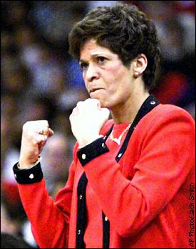 Rutgers coach Vivian Stringer clenches her fists in the waning seconds of her team's 59-51 victory over Georgia during the women's NCAA West Regional final in Portland, Ore. Rutgers now advances to the Final Four.