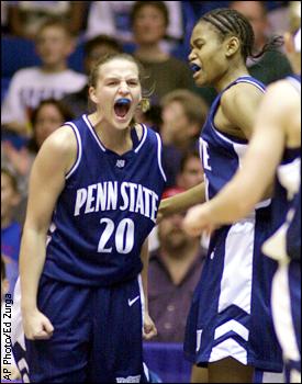 WE ARE! Penn State's Lisa Shepherd (20) is fired up along with her teammate Andrea Garner during the first half against Louisiana Tech in the final of the NCAA Midwest Regional. The Lady Lions beat the Lady Techsters, 86-65, to advance to the Final Four.