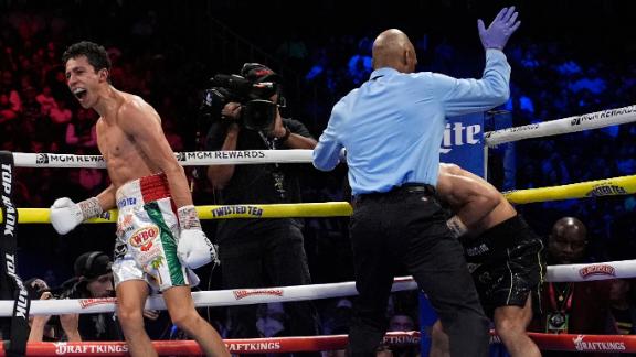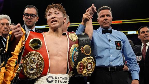 After getting knocked down early, Naoya Inoue overpowers Ramon Cardenas and earns a TKO win in the eighth round to retain his undisputed junior featherweight championship.